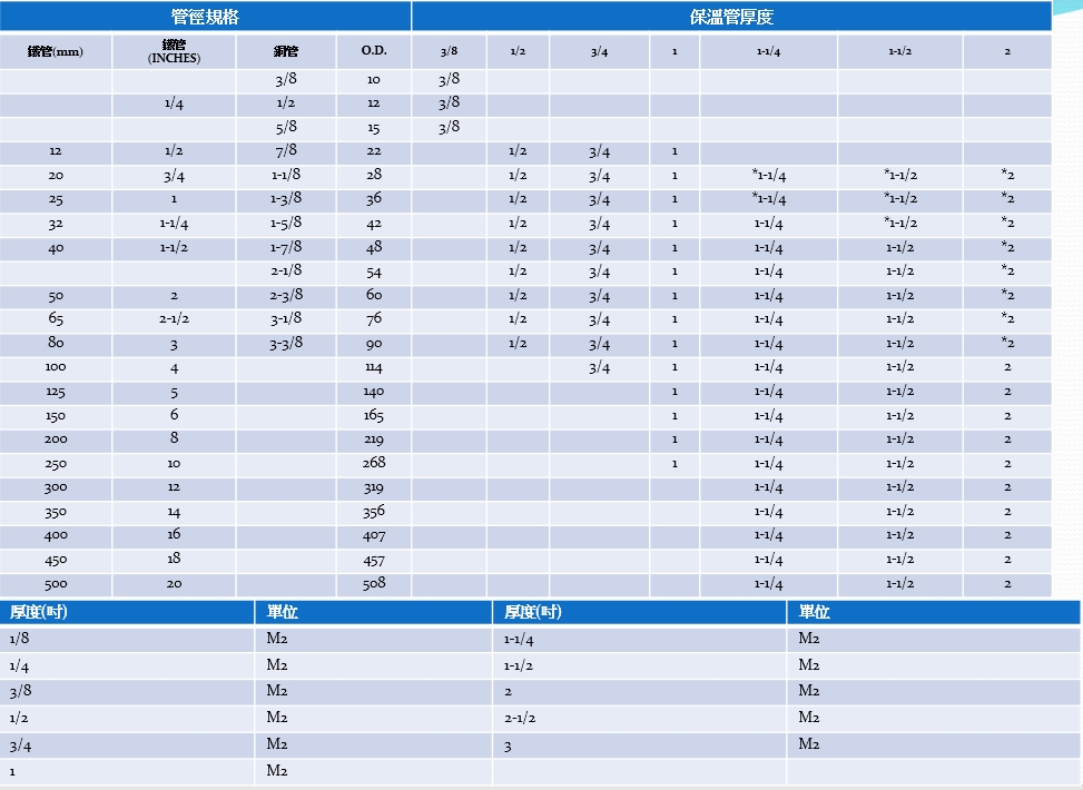 | 冷凍空調用 | 冷凍庫、冷藏庫、冰水主機、冷氣風管、冰水管…等冷凍空調設備及附屬之保冷及吸音。 |